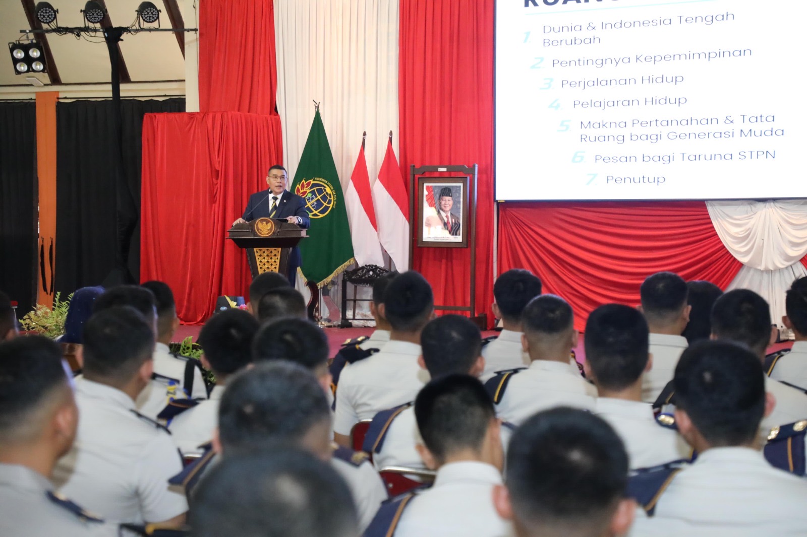 “Saya berharap Taruna/i STPN dapat menumbuhkan jiwa kepemimpinannya dari diri masing-masing. Kepemimpinan memberi arah, menyatukan perbedaan, dan menjadi inspirasi di masa-masa sulit, menjaga nilai dan integritas serta mendorong perubahan dan inovasi,” ungkap Wamen Ossy.