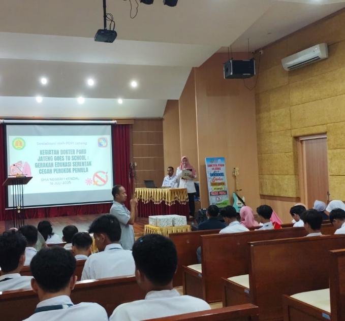 KENDAL – Siswa SMAN 1 Kendal diberikan edukasi bahaya rokok oleh Perhimpunan Dokter Paru Indonesia (PDPI) Jawa Tengah bekerja sama bareng dengan RSUD dr Soewondo Kendal, Rabu (16/07/26). Edukasi ini untuk mencegah perokok pemula di kalangan remaja.”Kegiatan ini juga memperingati Hari Tanpa Rokok Sedunia dan bertujuan untuk memberikan pengetahuan tentang bahaya rokok dan cara mencegahnya,” kata Kepala Bidang Kesehatan Masyarakat Dinas Kesehatan Kendal, Sri Rohayati,
