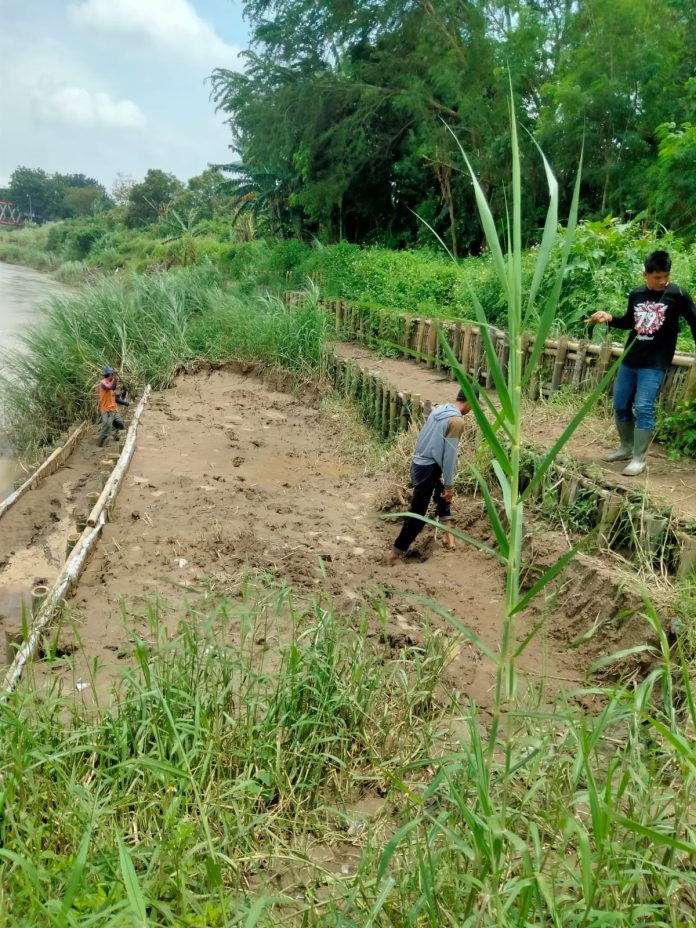 Takut Jebol, Warga dan Pemdes Kebonharjo Swadaya Perbaiki Tanggul Yang Longsor