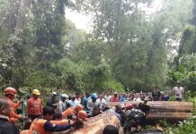 KENDAL - Sebuah pohon jenis Jati besar berdiameter 120 cm dengan panjang belasan meter roboh menutup seluruh badan jalan di Hutan Cagar Alam, Desa...
