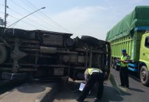 Ban Pecah, Truk Box Bermuatan Coollent Terguling
