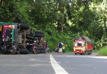 Akibat Rem Blong Truk Terguling di Jalur Tengkorak Poncowati
