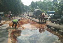Jalur Pantura Alas Roban di Banjiri Limbah Kecap