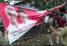 Kajen - Petugas gabungan panwaslu dan satpol pp kabupaten pekalongan, jawa tengah, melakukan penertiban alat peraga kampanye ilegal. Penertiban ini merupakan upaya dari panwas...
