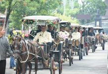 BATANG - Sebanyak 238 pejabat yang akan melaksanakan pelantikan diarak dengan menggunakan andong menuju lokasi pentikan.