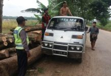 Lantaran mengganggu lalin, Brigadir Apri memeberikan Himbauan kepada tukang kayu