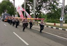 Pekalongan - Anggota Sat Sabhara Polres Pekalongan melaksanakan Lari Balok yang dimulai dari Mapolres Pekalongan sampai Asrama Polisi Polsek Kajen. Selasa (03/01) kemarin pagi.