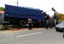 Diduga Sopir Ngantuk, Truck Loncat Jalur nabrak median pembatas jalan