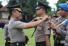 Batang - Kapolres Batang AKBP Edi S. Sinulingga, S.I.K., melantik 11 anggota polisi berpangkat Brigadir di lingkungan Polres Batang, meski disertai rintik hujan namun...