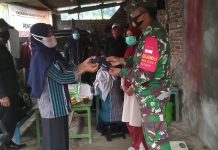 KENDAL - Mengantisipasi penularan Covid-19, Babinsa Koramil 14 Limbangan Serma Sukisno bersama bidan desa dan perangkat Desa Pakis melakukan Penerapan Pembatasan Kegiatan Masyarakat yang...